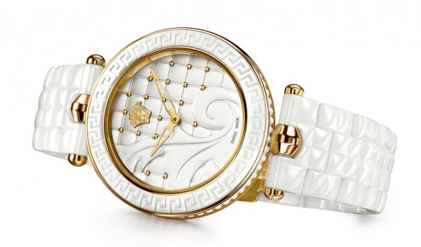 Con todos los códigos de la línea de accesorios Vanitas, Versace ha creado el Vanitas Ceramic con exclusivo cuadrante esmaltado, que conserva el celebrado diseño barroco en 3D, sobre un fondo acolchado con tachuelas. La caja de 40 milímetros de diámetro está adornada con diseño Greek Key en el bisel. El brazalete de cerámica posee un inusual efecto matelasé, otorgándole al reloj una luminosa apariencia y sentido de elegancia.