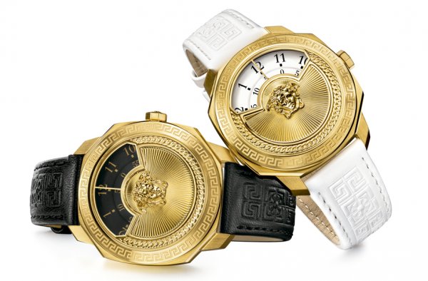 Versace introdujo además el Dylos Icon, un reloj de tamaño más pequeño con correa griega y que es la perfecta expresión del ADN de la casa en permanente evolución tomando la herencia e impulsándola hacia el futuro. El diseño permanece firme con la misma forma de caja, y una cubierta con rayos de sol grabados, la medusa 3D en el centro, la cadena gourmette, el diseño Greek Key sobre el bisel y el cuadrante original que exhibe horas y minutos en discos rotativos. Disponible en blanco y oro o negro y oro, Dylor Icon también puede ir acompañado con brazalete de acero con eslabones centrales en forma de Greek key estilizados.