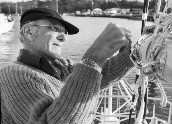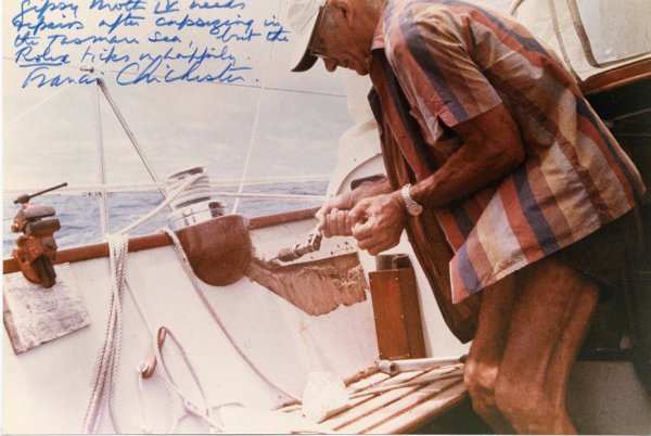 Este hombre discreto y sin pretensiones, que antes de su partida era empresario y aviador, decidió echarse a la mar en los años 1950 y, en 1960, ganó con 65 años su primera regata transatlántica en solitario, 40 días de navegación entre Plymouth (Reino Unido) y Nueva York y con regatistas dos veces más jóvenes que él como contrincantes. Al hacerlo desafió a todos los especialistas que mantenían que su velero de dos mástiles estaba diseñado para una tripulación de ocho personas. El 17 de septiembre de 1966, cuando su aventura no hacía más que comenzar, celebró tranquilamente su cumpleaños en pleno Atlántico, vestido de esmoquin y bebiendo champagne. Meses más tarde, se congregaron unas 250.000 personas alborozadas en los muelles de Plymouth para recibir a su héroe en su regreso a su país de origen.