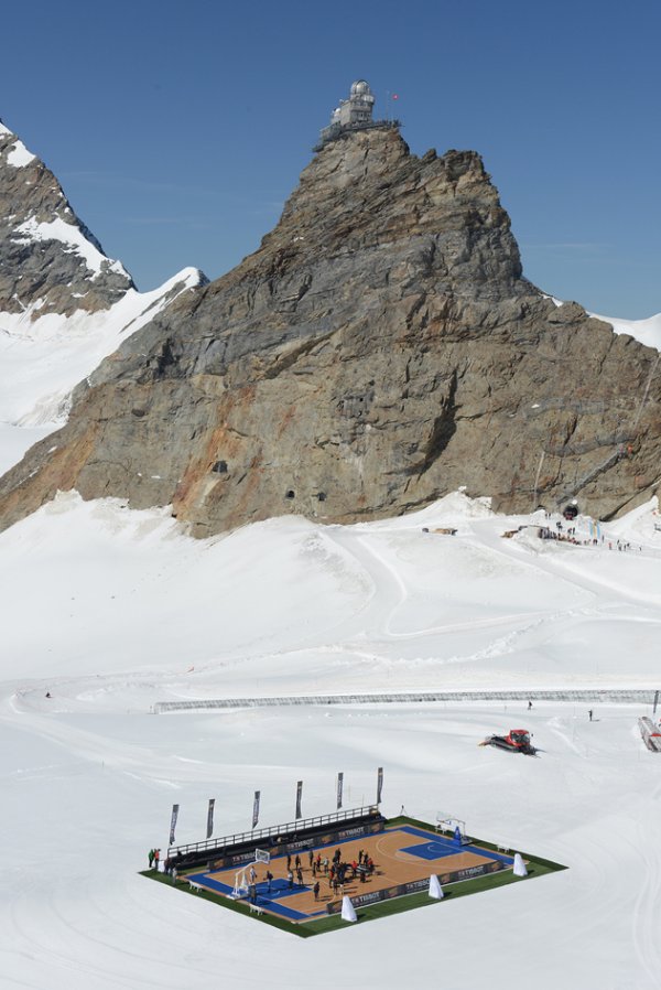T ony Parker, estrella de la NBA y campeón europeo de baloncesto, participó de un encuentro enfrentando a un equipo de jugadores suizos el miércoles 14 de septiembre en la cumbre Jungfraujoch. Allí demostró su velocidad y agilidad a 3.454 metros de altitud. Para poder jugar un clásico partido cinco contra cinco en el glaciar Aletsch, se habilitó para la ocasión una gran pista de baloncesto de 33,55 por 20,78 metros. El aire frío y menos pesado de la montaña no ha cambiado la estrategia de juego de este gran deportista. Tony se ha ganado su reputación como uno de los mejores y más veloces jugadores del mundo.