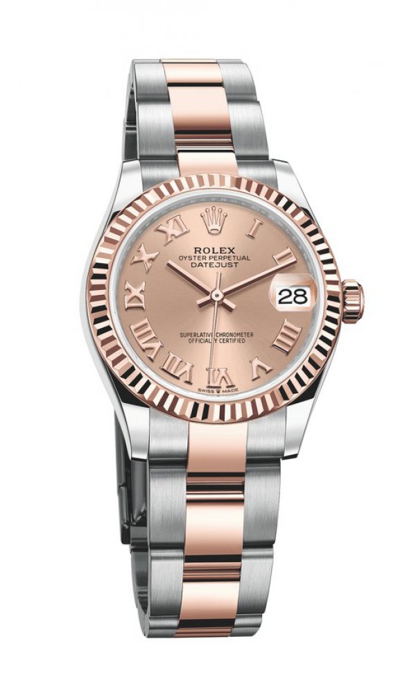 Combinación de oro y acero en un mismo reloj Rolex, el Rolesor supone una verdadera firma de la marca desde 1933, fecha en la que se registró el nombre. Es el encuentro de dos metales: uno, noble y precioso, fascina por su brillo e inalterabilidad; el otro, reputado por su resistencia, garantiza robustez y fiabilidad. Estas características reflejan perfectamente la fusión de elegancia y rendimiento lograda por los relojes Rolex. En la nueva modalidad en versión Rolesor amarillo del Datejust 31, el bisel, la corona y los elementos centrales del brazalete son de oro amarillo de 18 quilates, mientras que la carrura y los elementos laterales son de acero Oystersteel. En la modalidad en versión Rolesor Everose, el oro Everose de 18 quilates sustituye al oro amarillo de 18 quilates siguiendo el mismo principio.