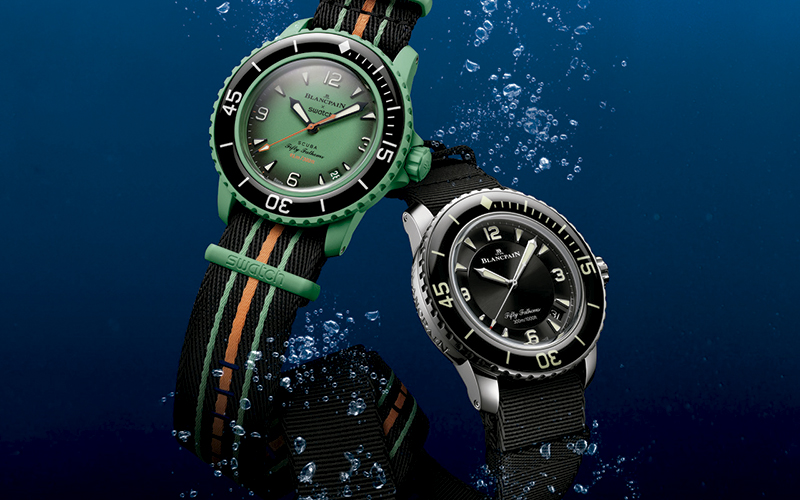 En esta nueva colaboración, Swatch celebra el icónico Fifty Fathoms de Blancpain y rinde tributo a los oceános, a través de cinco modelos emblemáticos con el característico toque alegre y divertido de Swatch.