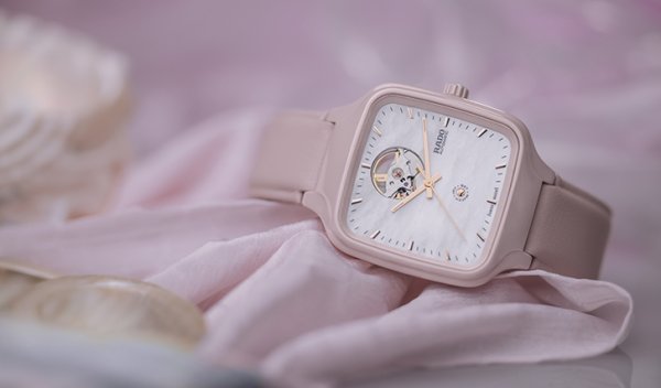 Ash Barty y Rado colaboraron en un nuevo True Square edición limitada, con caja cuadrada de cerámica de alta tecnología de color rosa claro.