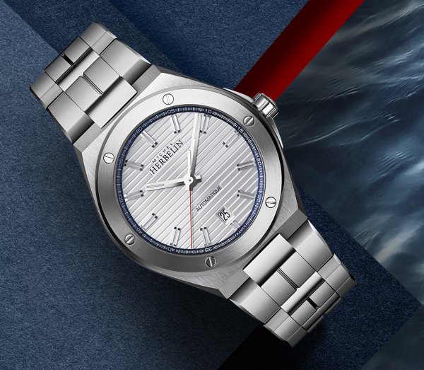 Adornado con un realce azul sobre una esfera blanca y avivado por una pequeña aguja segundera roja, esta pieza automática hecha en Francia revela modestamente su herencia, manteniendo su estilo de los años setenta.