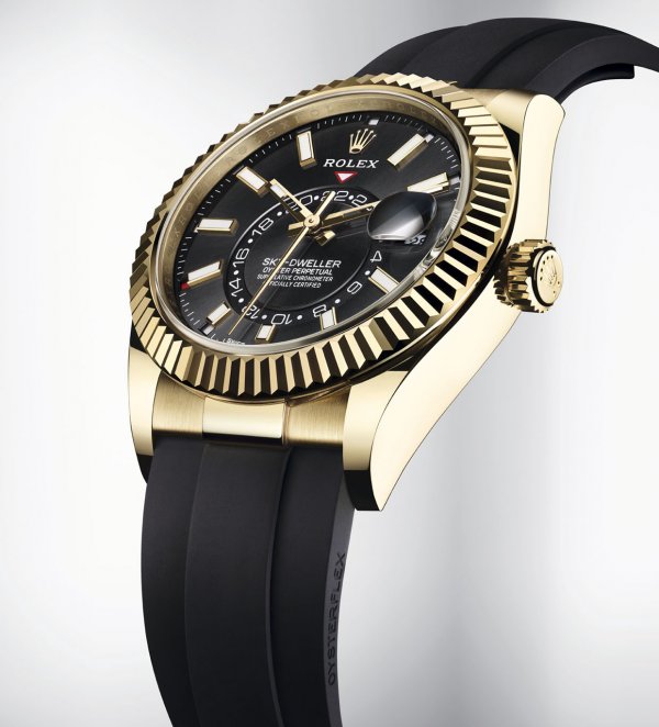 Rolex presentó una nueva modalidad en oro amarillo de 18 quilates de su Oyster Perpetual Sky-Dweller, dotada de un brazalete Oysterflex.