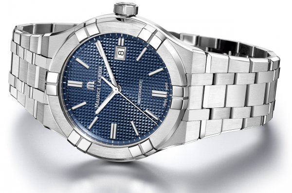 Maurice Lacroix, ofrece una gama completa de relojes Aikon provistos de movimientos automáticos: un modelo de tres agujas y fecha y un cronógrafo con indicación del día de la semana y del mes.
