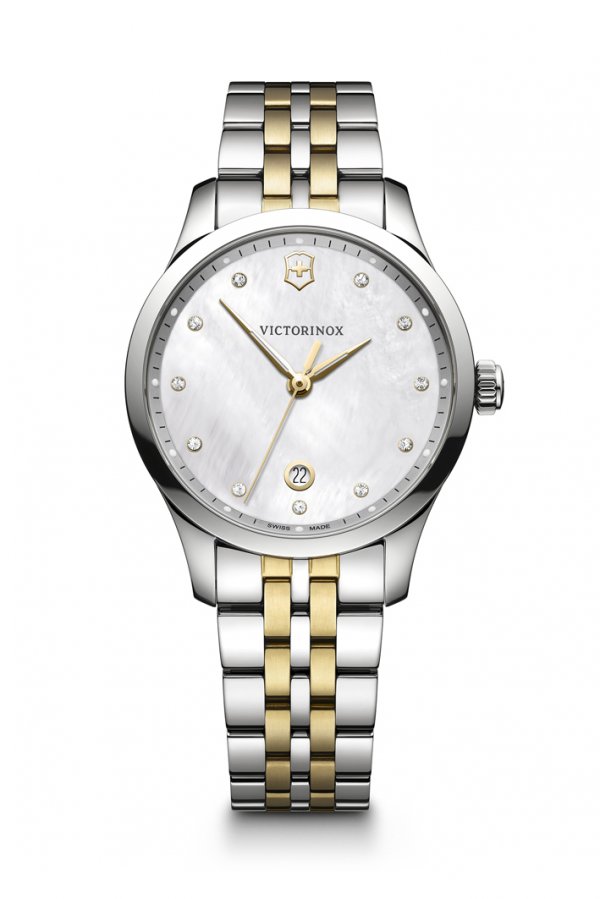 L a colección Alliance de este año sorprende por su maravillosa caja redonda de inspiración clásica, porque lo clásico nunca pasa de moda. La variante monocromática presenta una esfera con acabado cepillado y unos finos indicadores en forma de flecha que definen la personalidad y el carácter del reloj, a la vez que realzan sus contornos. El brazalete se completa con discretos y elegantes detalles que le brindan una estética armoniosa sin restarle ni un ápice de sofisticación. Una fusión de los principios de Victorinox: calidad, diseño y comodidad.