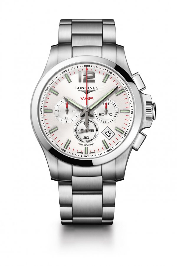 En consonancia con esos hitos históricos, la marca del reloj de arena alado presenta un nuevo Conquest V.H.P. disponible hoy con un calibre cronógrafo en distintas combinaciones cromáticas. El movimiento desarrollado en exclusiva para Longines se distingue por su altísima precisión para un reloj analógico (± 5 s/año) y su capacidad de reinicializar las agujas después de un golpe o una exposición a un campo magnético, mediante el sistema DPR (detección de la posición de los rodajes). Ventajas que le confieren seguramente la calificación de movimiento excepcional, a las que hay que añadir una pila de muy larga duración, así como un calendario perpetuo.
