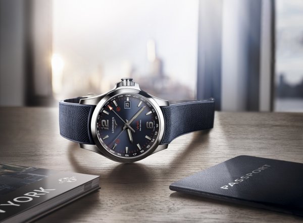El nuevo Conquest V.H.P. GMT Flash Setting cuenta con un segundo huso horario y un sistema de control del reloj por medio de la luz, llamado «Flash Setting».