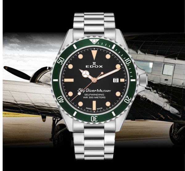 Ahora Edox lanza un nuevo SkyDiver, en homenaje a sus 135 años de historia y para los aficionados a los buenos relojes militares. Accionado por un movimiento automático suizo de tres agujas calibre 80, el SkyDiver resistente al agua hasta 300 metros presenta un bisel para buceadores y un fondo de la caja con motivos de paracaídas grabados. El cristal de zafiro de 2 mm de grosor y el Superluminova X1 en las agujas e índices garantizan la resistencia a los arañazos y la legibilidad en las condiciones más extremas. Al igual que su misterioso predecesor de los años 70, el SkyDiver 2019 es una edición estrictamente limitada a 555 piezas.